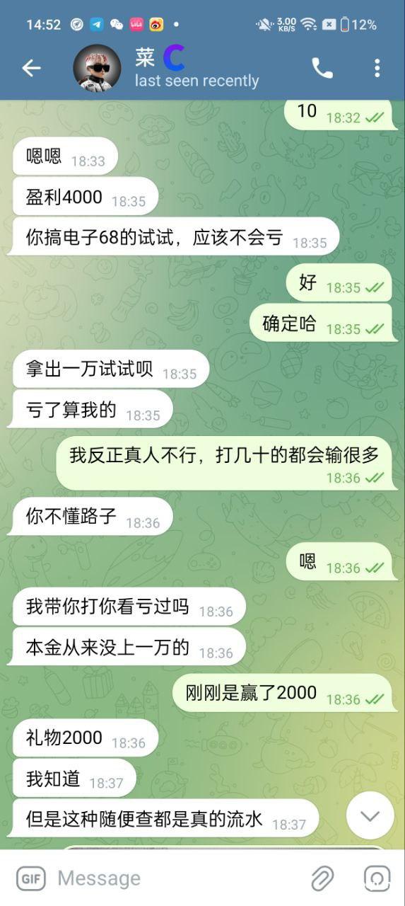 (声明本人不是傻逼从来没信过他说的一个月一百多万,只是钱在他那一直陪他演戏,只为了能拿到我的辛苦费,现在佣金和输钱他全都不给)