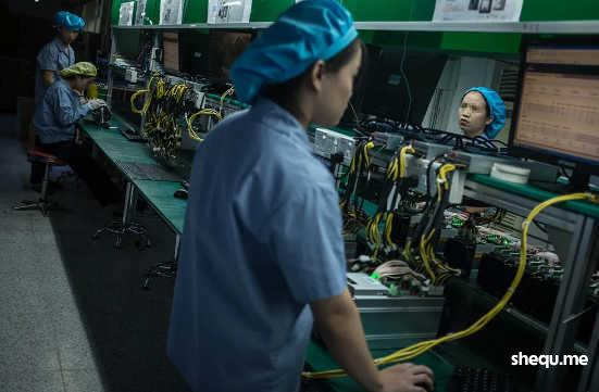 深圳的一家矿机生产基地,工作人员在对矿机进行通电检测(图|视觉中国)
